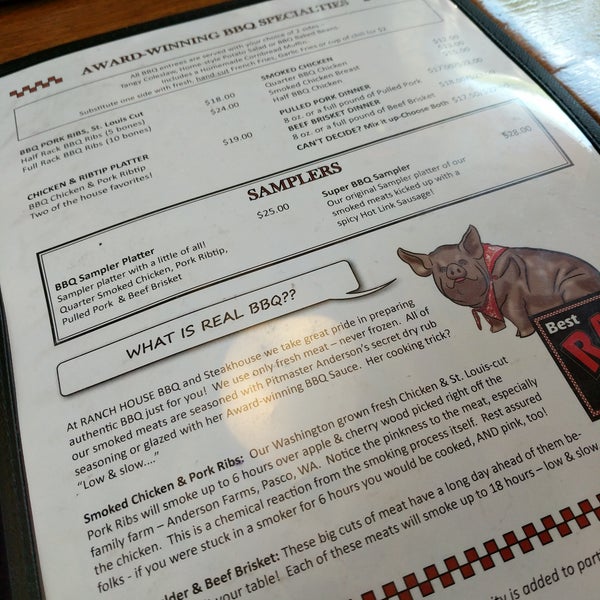 Ranch House Bbq Steakhouse Menu In Olympia Washington Usa